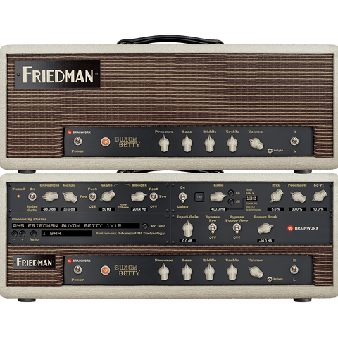 Get a boutique blend of classic American and British amp tones. Use your Apollo Interface to track through the Friedman Buxom Betty — with no latency Audition 100 separate high-end recording chains, featuring multiple cabinets and classic microphones Shape tones further with FX Rack’s Vintage Delay, noise gate, high/low filters, and more Easily dial in dynamic, medium gain tones and snarling overdrive textures just by using your guitar's volume control