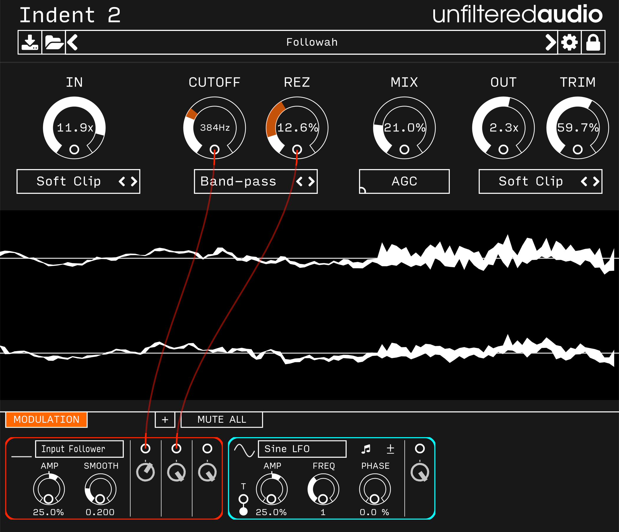 Getting tired of using the same old pedal distortion plugins? Want some more room to experiment? It’s time to get to know Indent 2, from Unfiltered Audio. With just a few adjustments, you can use this handy distortion toolkit to dial in just the right sound in seconds. But don’t be fooled by its simplicity; inside this small package is a highly versatile wave-shaping tool with no less than ten unique clipping algorithms. It’s like having a whole library of distortion plugins in one package. Whil