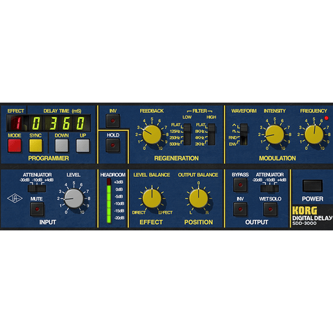 Get the delay that revolutionized modern rock and pop. Tap into the song‑inspiring sounds of the legendary KORG SDD-3000 Digital Delay in a fully authenticated plug‑in Add unique, chewy 13-bit delay, phase, flange, and chorus to guitar, synths, vocals and more Get the dynamic interaction of the SDD-3000’s analog preamp stage with Unison™ technology for Apollo interfaces Use Hold function to layer shimmering pads and soundscapes