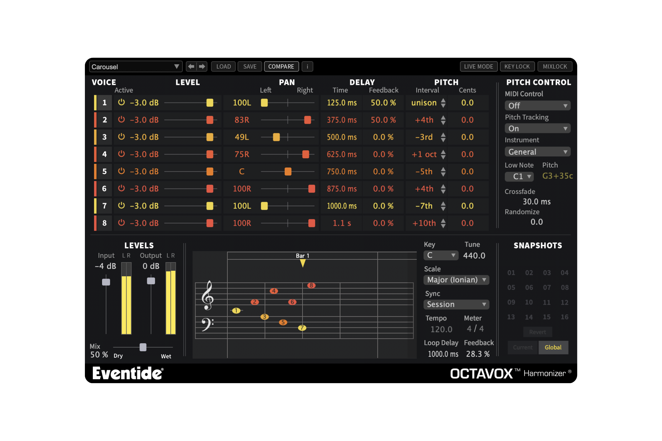 Eight-voice diatonic pitch shifter.