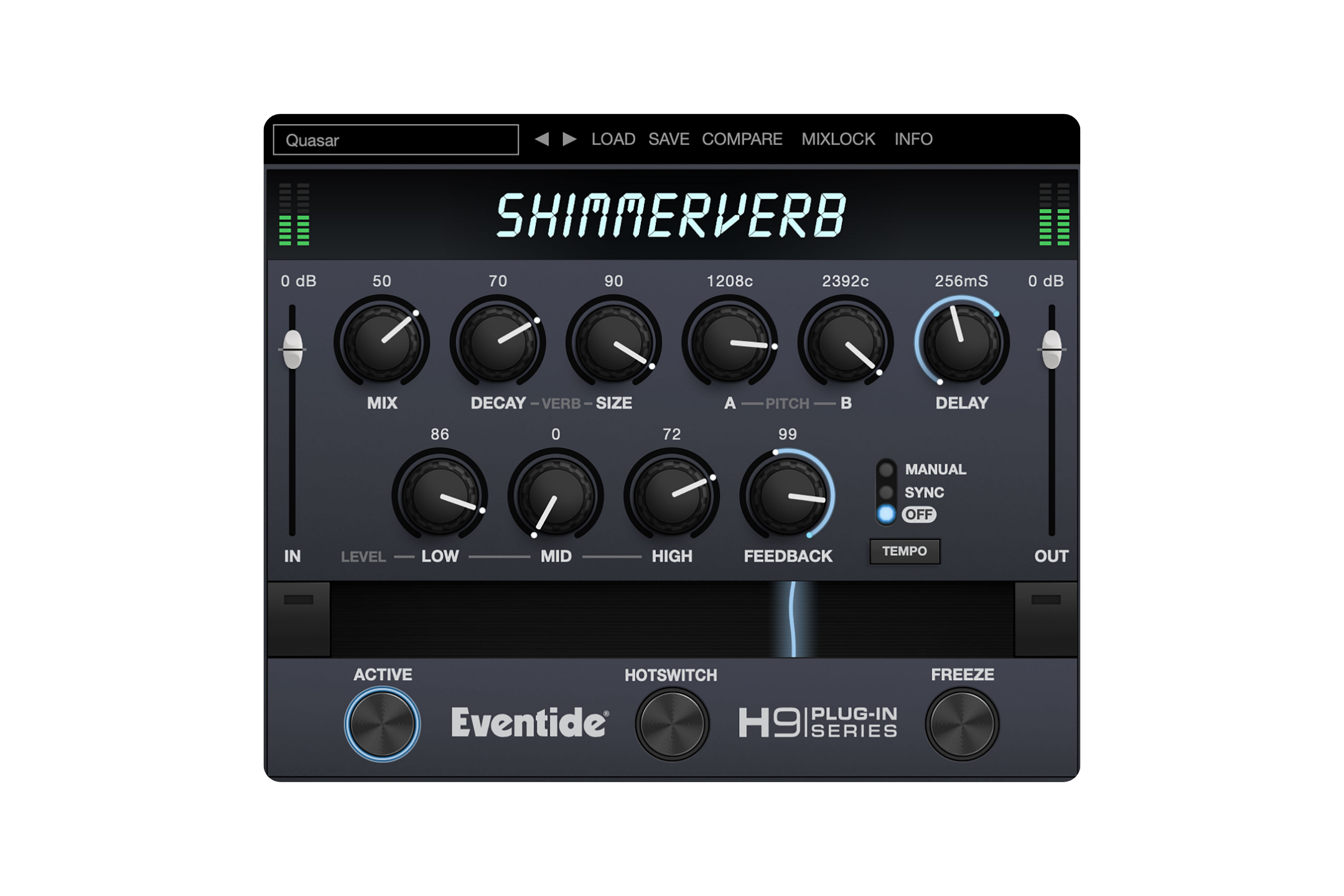 Reverb with pitch-shifting for ethereal sounds.