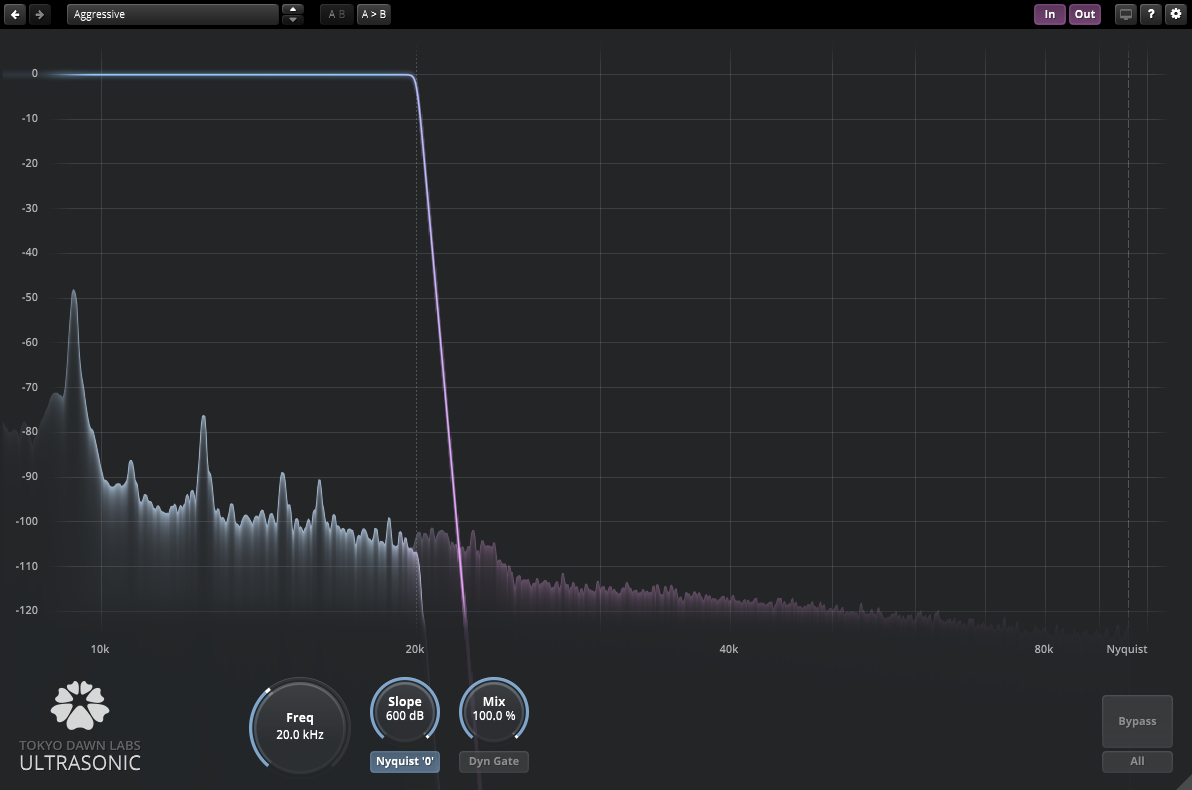 TDR Ultrasonic is a filter designed to control the accumulation of ultrasonic content in oversampled recording, processing, or playback chains, aiming to prevent ultrasonics from running into nonlinear systems. It uses a linear phase filter with a continuously variable slope, supports sample rates up to 20MHz, and features a Dynamic Ultrasonic Gate and enforcement of infinite attenuation at Nyquist.